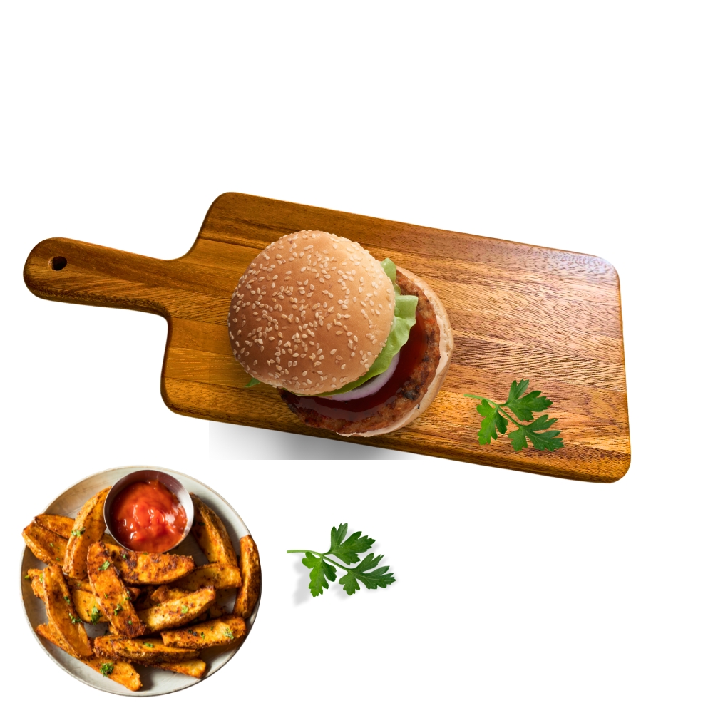 This bistro style acacia wood long bread board with handle is designed for everyday serving in busy environments. Its long shape makes it ideal for bread, baguettes and shared platters, while the handle makes it easy to carry, serve and hang when not in use.